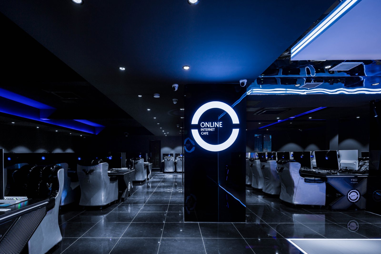 網(wǎng)(wǎng)吧裝修案例:電競(jìng)燈光網(wǎng)(wǎng)咖,設(shè)(shè)計(jì)(jì)裝修效果圖整體設(shè)(shè)計(jì)(jì)風(fēng)(fēng)格以酷炫的燈光為基礎(chǔ)(chǔ),在此空間中,明與暗,線(xiàn)與面,光與影,延伸與抵抗,全部以二元對(duì)立的方式吸收空間的敘事性,讓身體里的每一個(gè)(gè)細(xì)(xì)胞在其中激蕩。