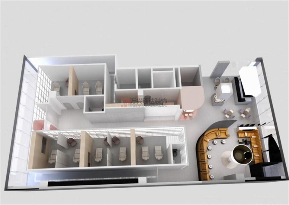 北京裝潢公司案例:外觀(guān)看來(lái)宛如長(zhǎng)形玻璃盒子的場(chǎng)域,里頭正施展著跨越時(shí)(shí)光的魔法,人們的時(shí)(shí)間像是被凍結(jié)(jié),悄悄地歸零后再重新啟動(dòng),揭開(kāi)個(gè)(gè)人熠熠的亮麗光采!接下空間規(guī)(guī)劃任務(wù)(wù)的構(gòu)(gòu)設(shè)(shè)計(jì)(jì),運(yùn)(yùn)用擬人般分割、變形及再造的手法,帶入現(xiàn)(xiàn)代女性既剛強(qiáng)(qiáng)又柔軟的兼容輪廓,讓專(zhuān)屬女性的醫(yī)(yī)療美容空間,不再那么冰冷有距離,反而如同一處偷閑的療愈境域般的存在。