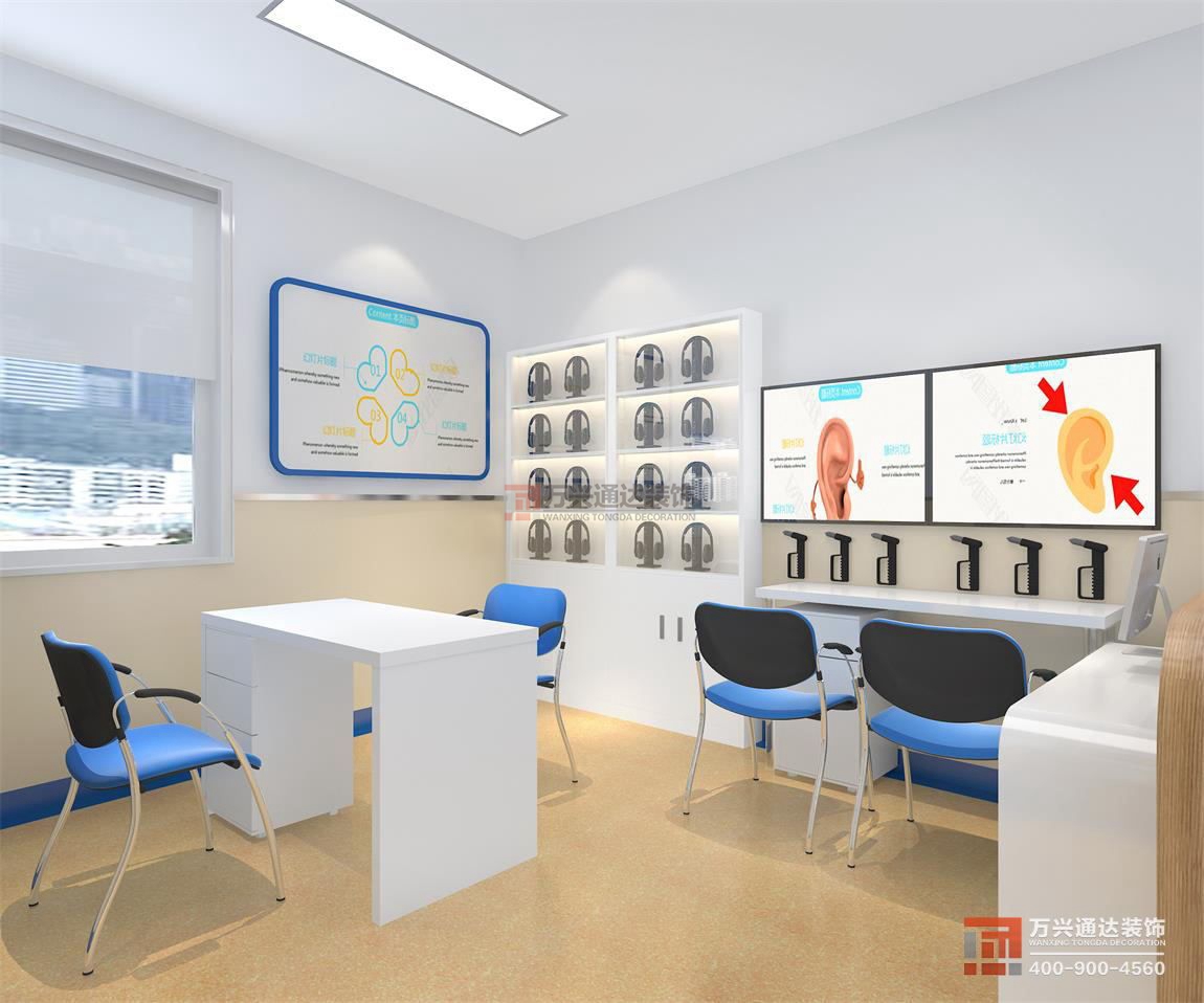 北京辦公室裝修公司案例:設(shè)(shè)計(jì)(jì)理念: 我們利用邊間建筑原有的特性,將耳科室內(nèi)(nèi)診所的服務(wù)(wù)空間全部整合至一道隱喻剖面圖的造型墻面。