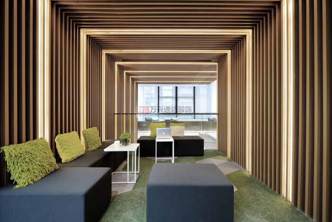 辦公室裝修案例:巧妙的將辦公裝修與趣味融合到一起,設(shè)(shè)計(jì)(jì)最大的初衷是:“ 讓人在辦公環(huán)(huán)境里面很愜意地體會(huì)自然 ”。以此來(lái)創(chuàng)(chuàng)造一個(gè)(gè)生態(tài)(tài)型的,能跟自然有一定互動(dòng)的園區(qū)(qū),由生態(tài)(tài)性來(lái)創(chuàng)(chuàng)造部分的微氣候。這是一個(gè)(gè)彰顯活力的地方,是一個(gè)(gè)充滿(mǎn)樂(lè)趣辦室公設(shè)(shè)計(jì)(jì)裝修風(fēng)(fēng)格。